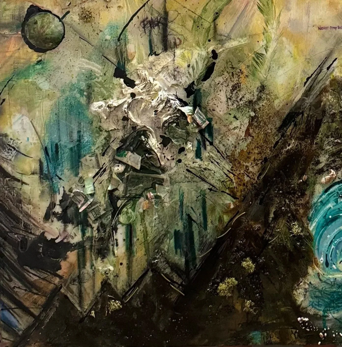 Mixed media built through tension, motion, and upward force.