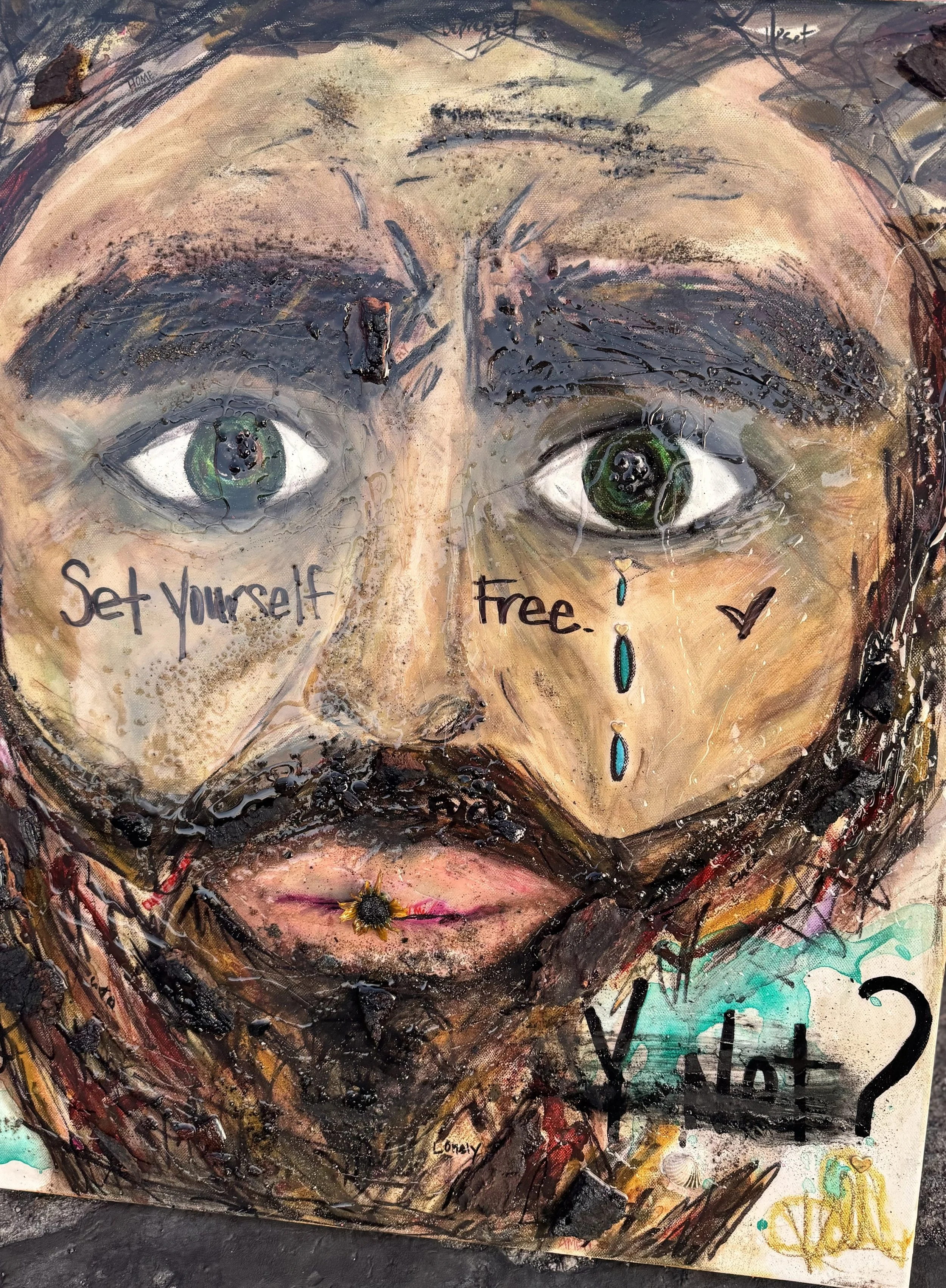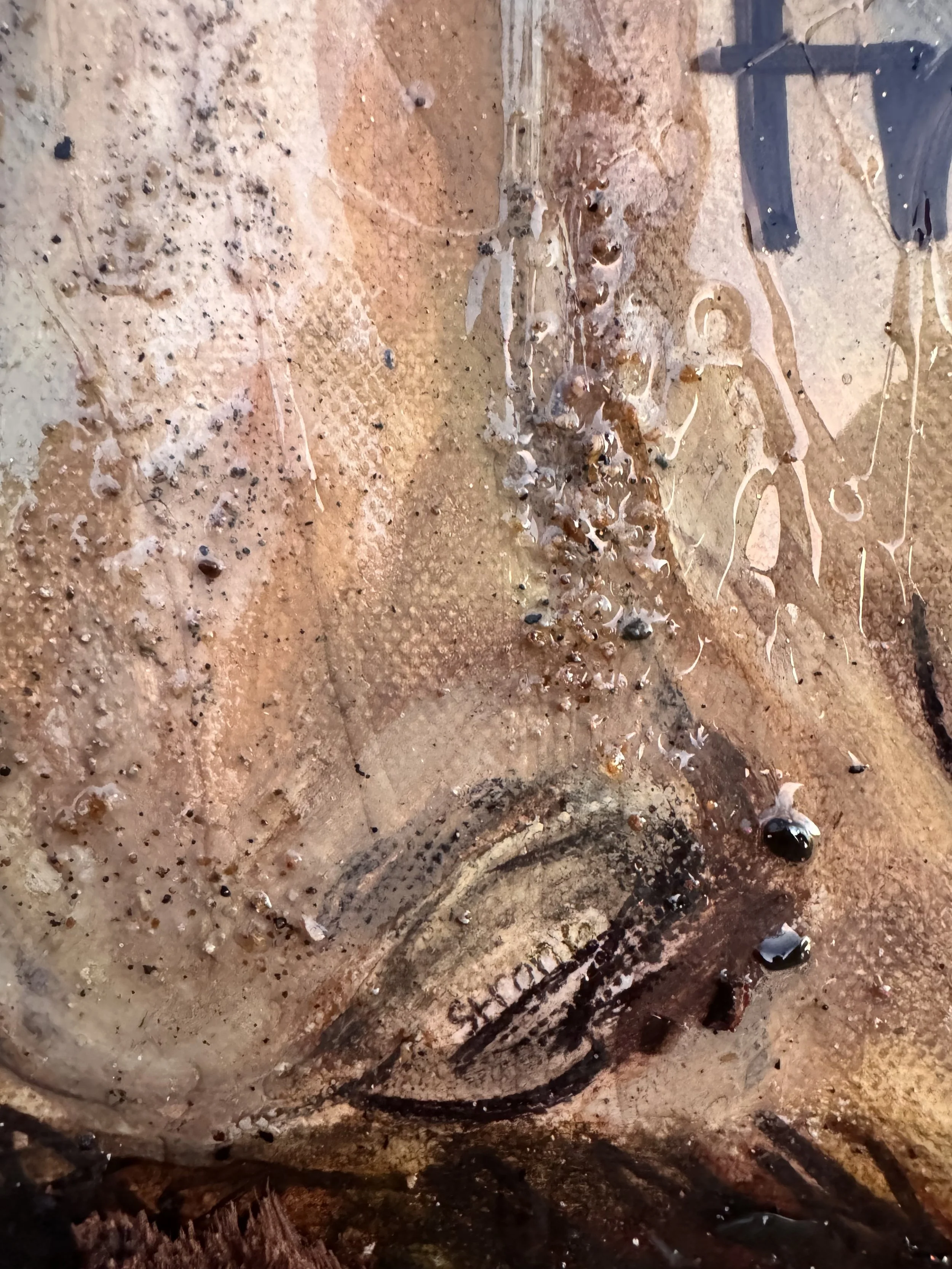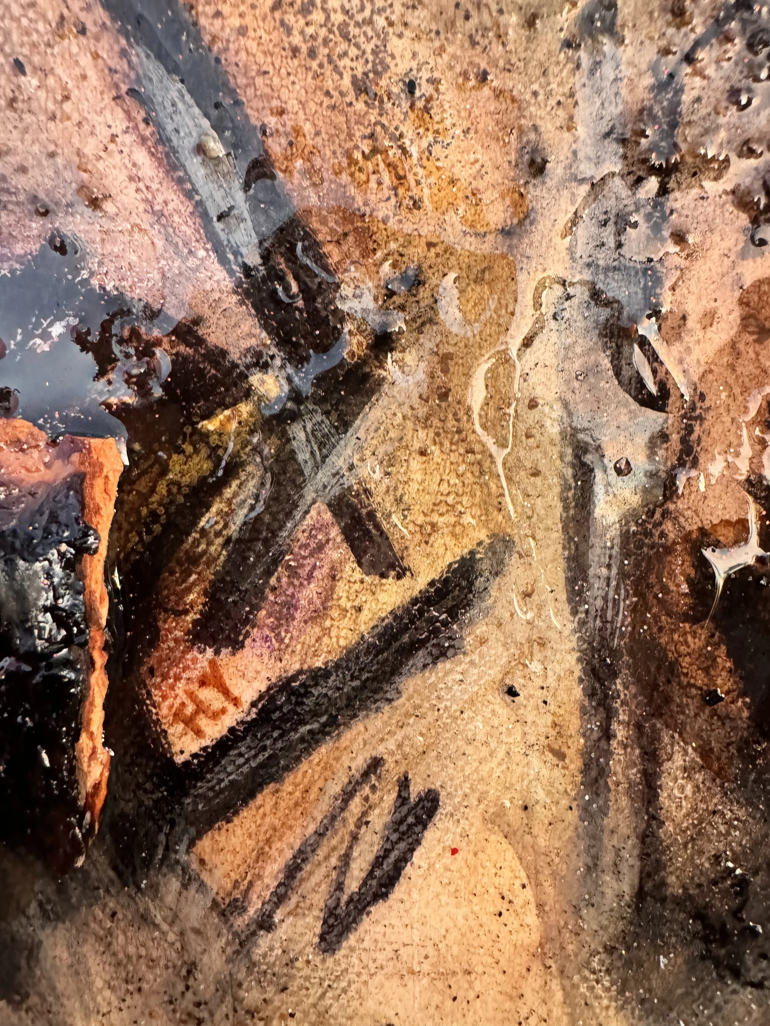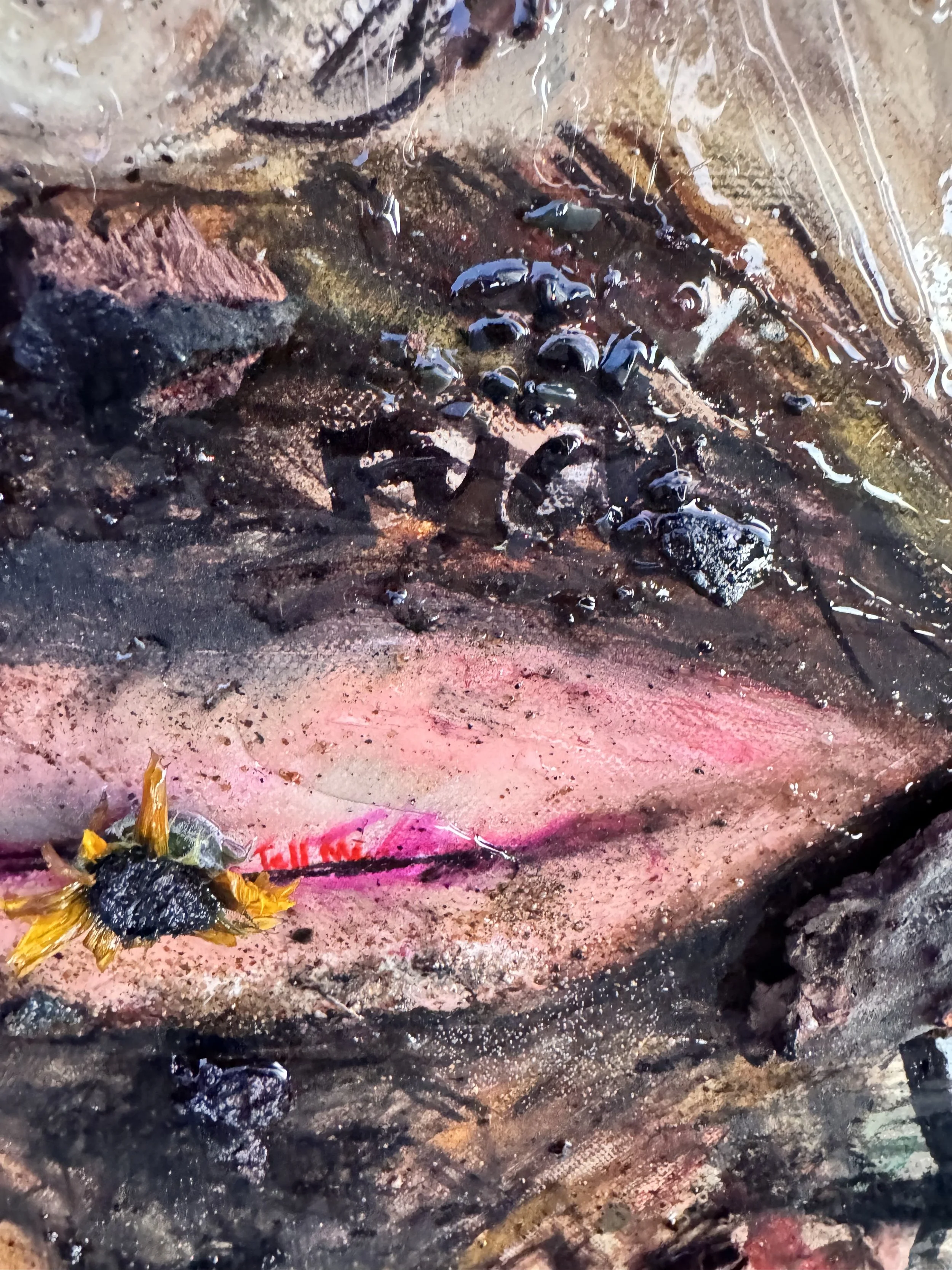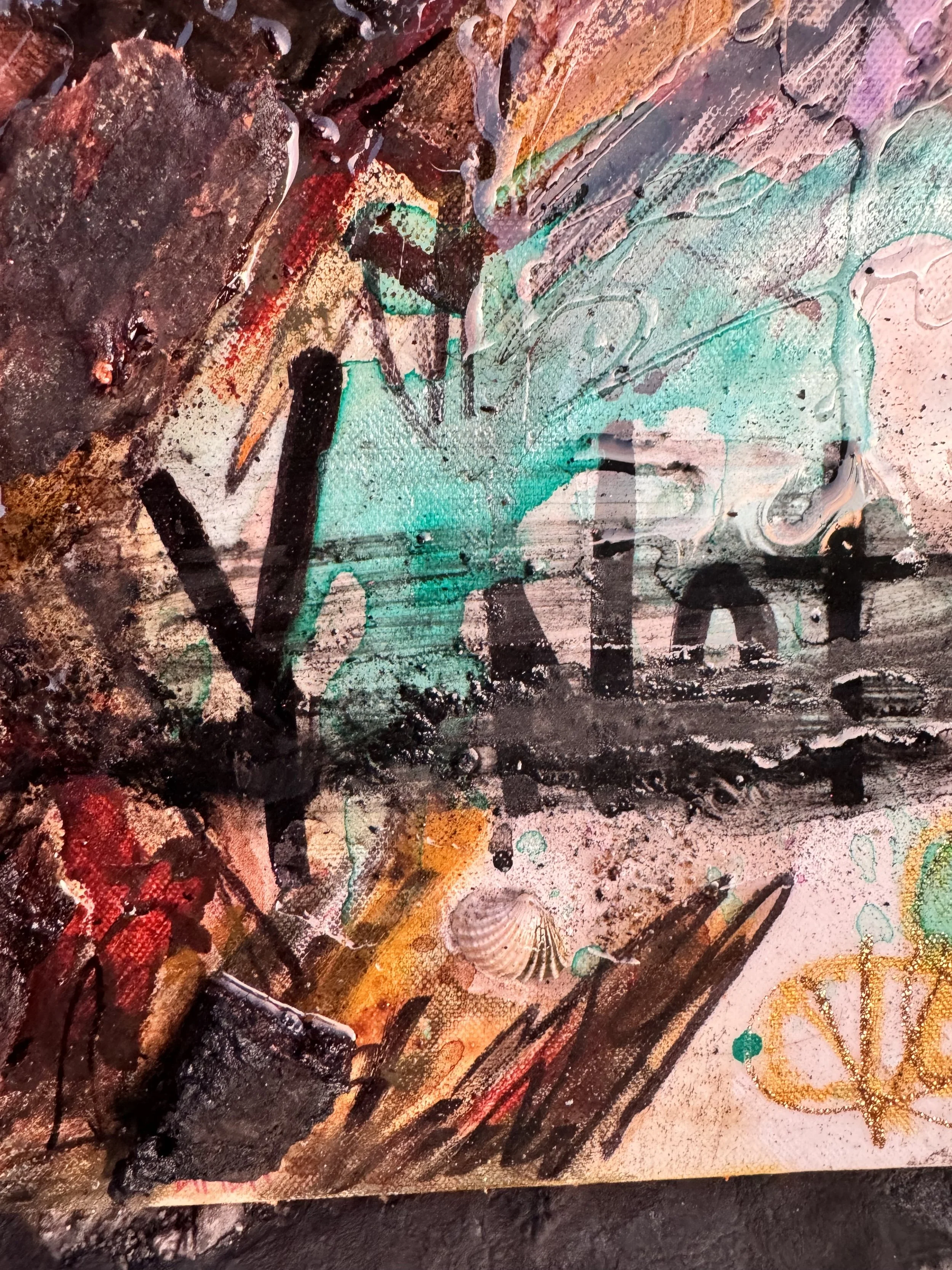 Mixed Media, Oil & Acrylic with California Sand, Burnt Bark, and Charcoal on Canvas in a custom wood frame