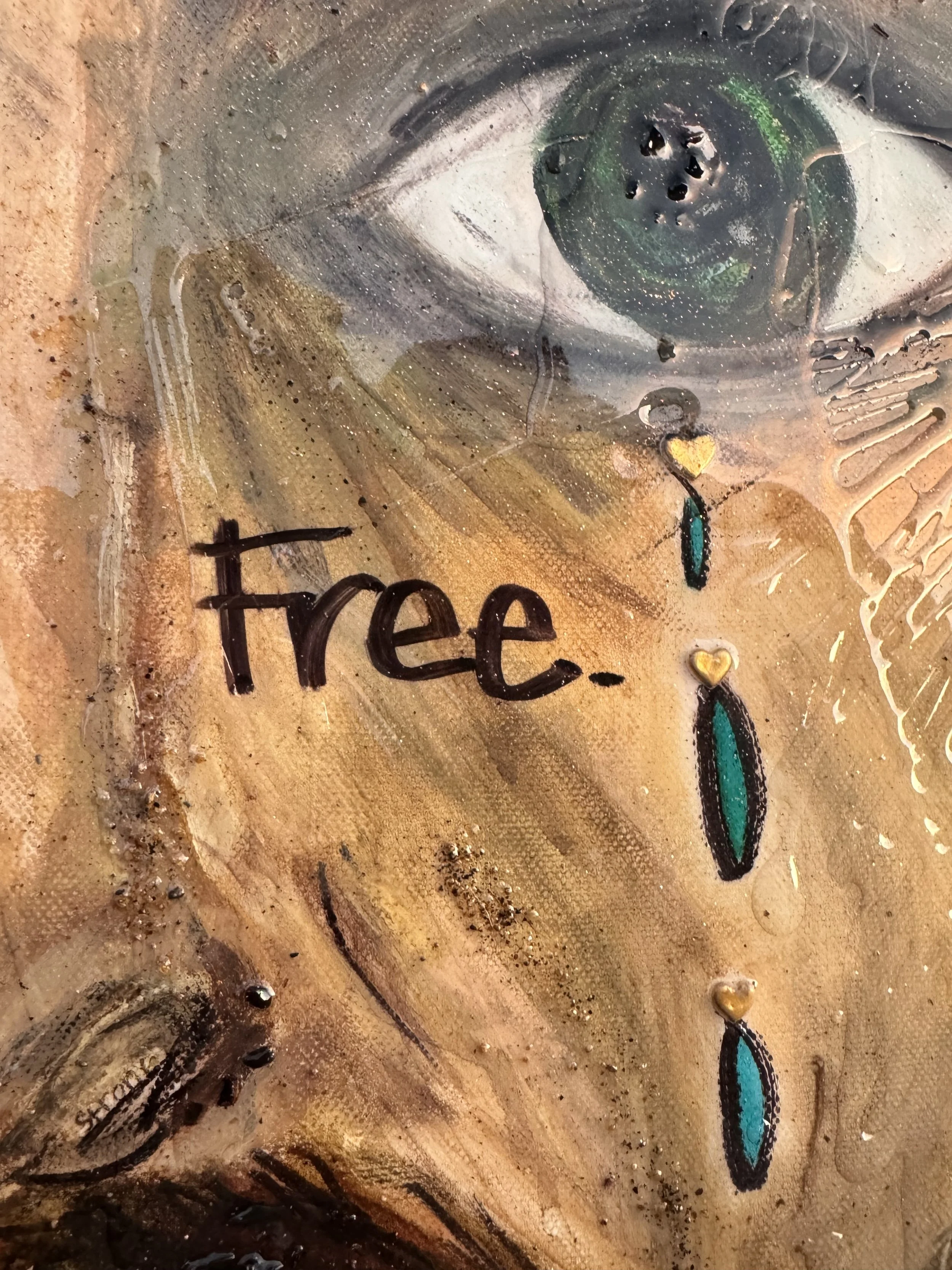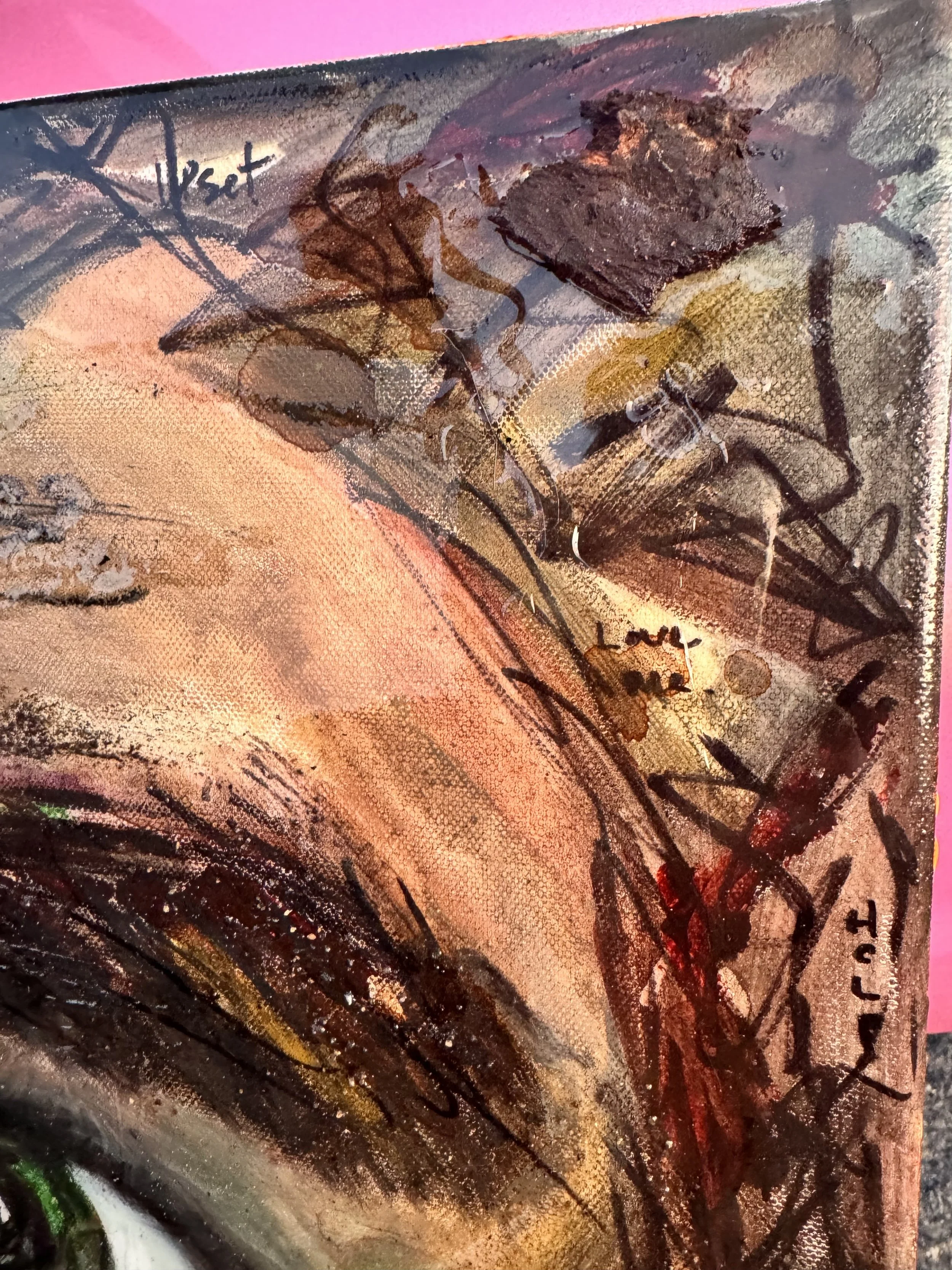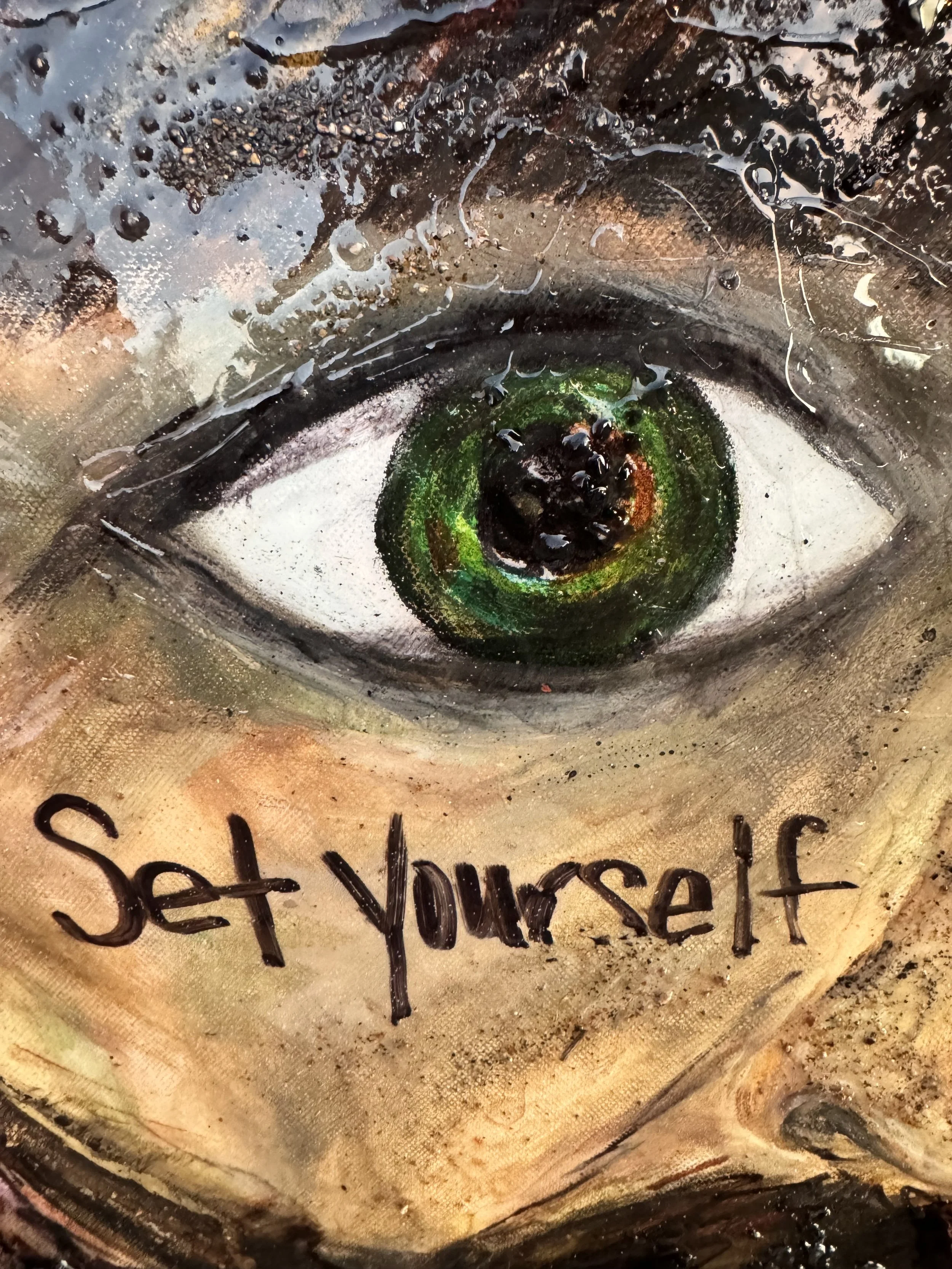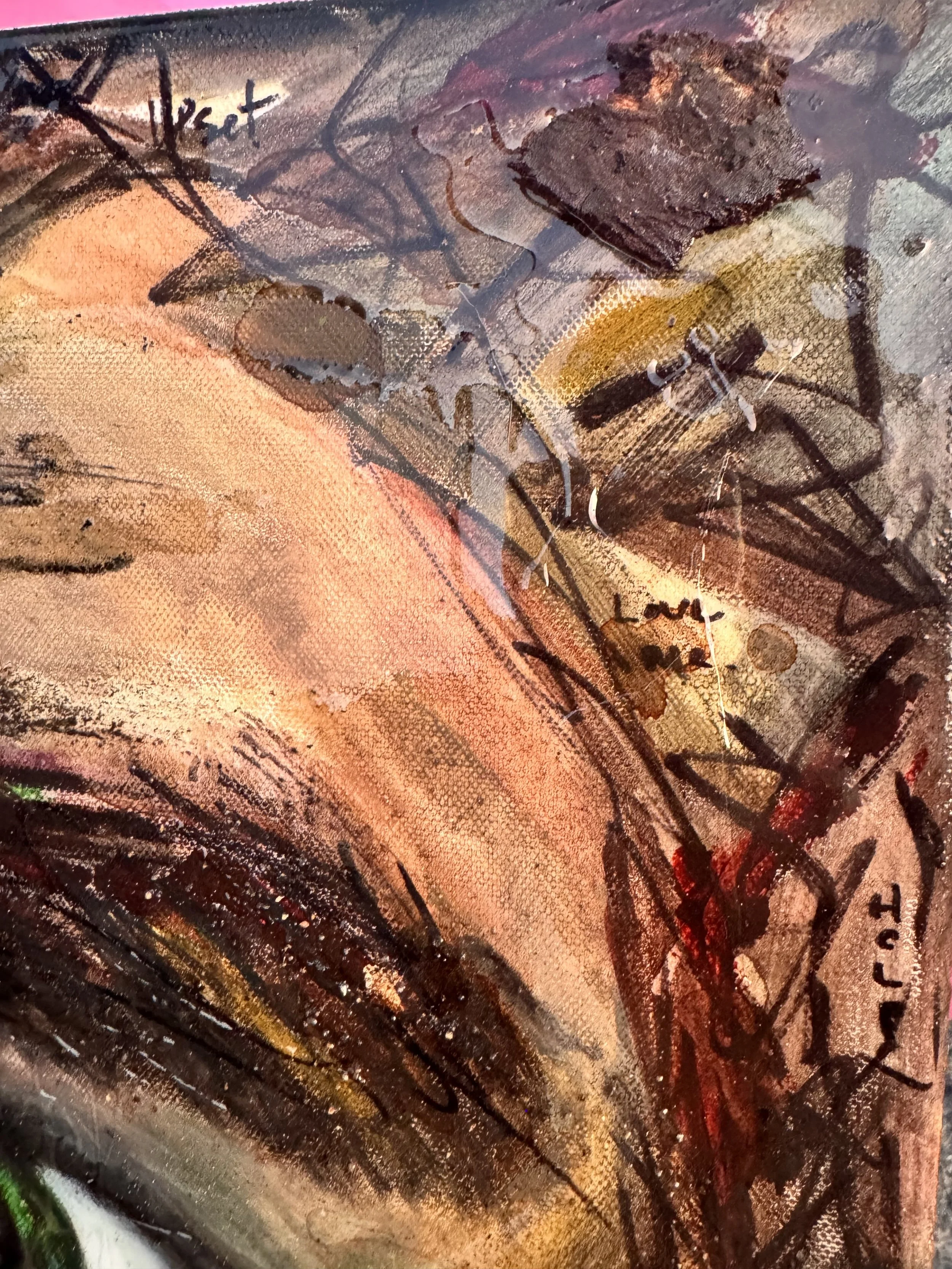 Mixed Media, Oil & Acrylic with California Sand, Burnt Bark, and Charcoal on Canvas in a custom wood frame
